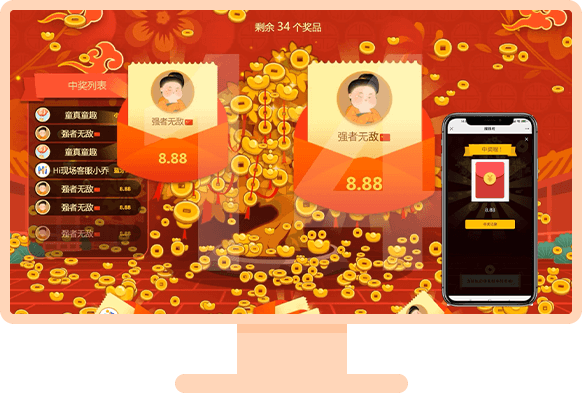 签到、弹幕、红包雨、花样抽奖、趣味游戏等丰富互动形式,嗨燃线上年会氛围
